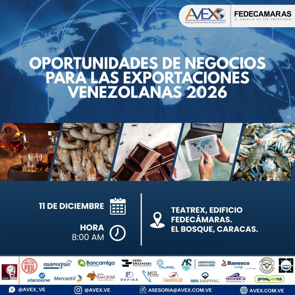 El dia Jueves 11 de Diciembre se realizo el evento Oportunidades de Negocios para las Exportaciones Venezolanas 2026, organizado por la Asociacion Venezolana de Exportadores AVEX @avex.ve y FEDECAMARAS @fedecamaras_venezuela y parte de la Junta Directiva de la Cámara Venezolana Portuguesa de Comercio, Industria, Turismo y Afines (CAVENPORTVE) @cavenport_ve_oficial y @cavenpor.pt junto a afiliados estuvieron presentes en tan importante espacio de Networking empresarial.