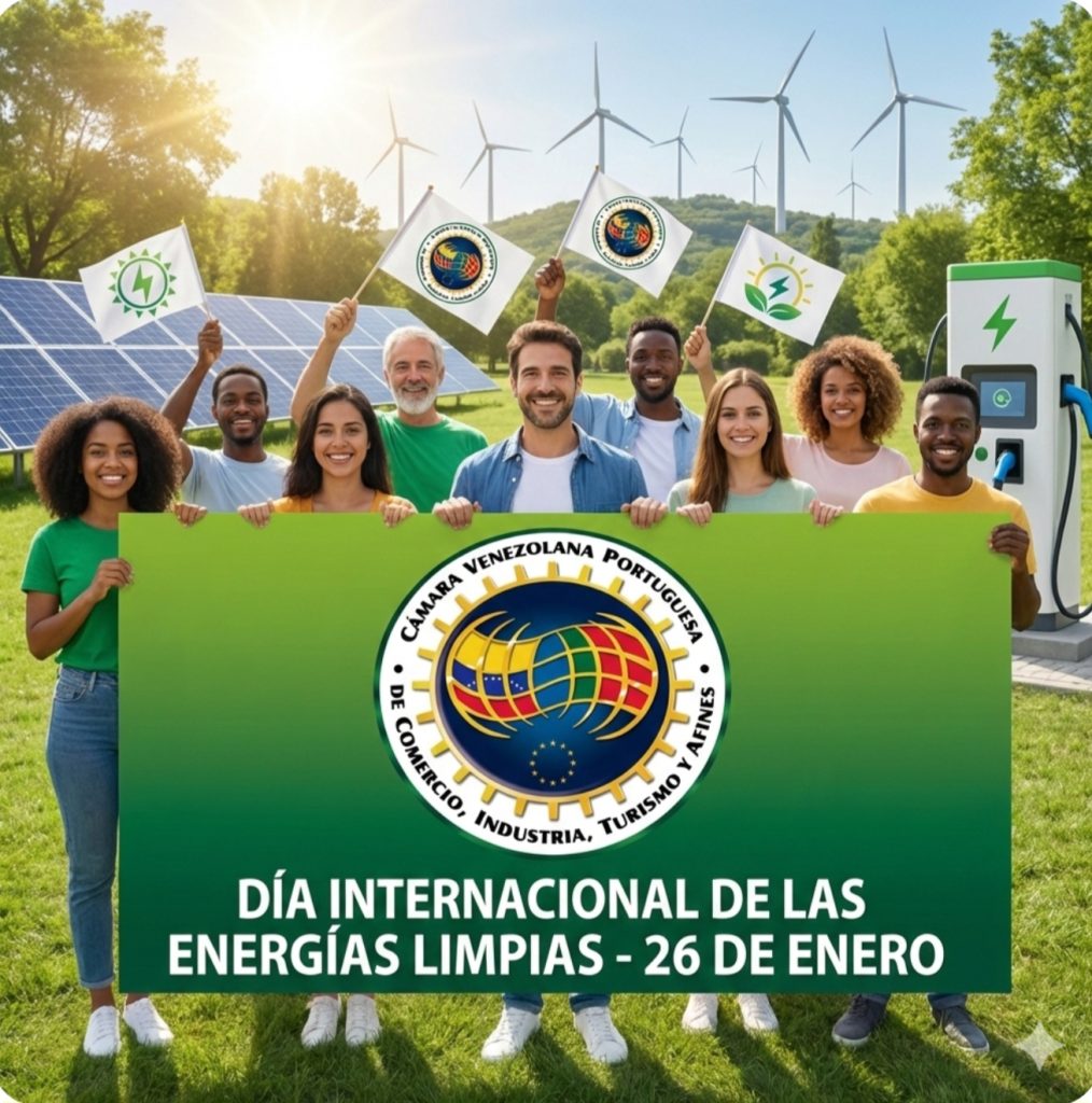 Desde la Junta Directiva de la Cámara Venezolana Portuguesa de Comercio, Industria, Turismo y Afines (CAVENPORTVE), @cavenport_ve_oficial y @cavenpor.pt nos sumamos a la conmemoración del Dia Internacional de la Energía Limpia. La Asamblea General de las Naciones Unidas declaró el 26 de Enero. Esto con el objetivo de promover una transición energética, justa, inclusiva y sostenible para beneficio de las personas y el planeta. Desde nuestra camara reafirmamos el compromiso de seguir impulsando a nivel empresarial el uso de energías limpias y la protección del medio ambiente.